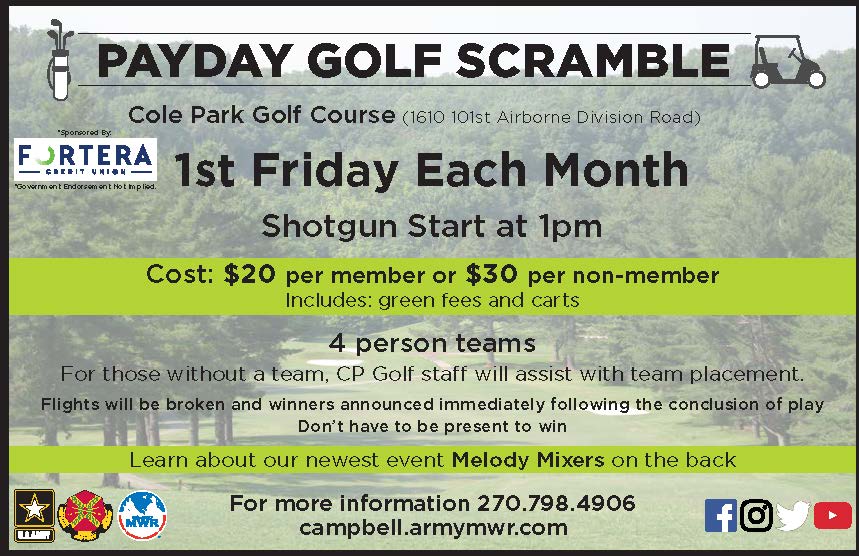 Cole Park Golf Course holds a Payday Scramble on the 1st Friday of each month.