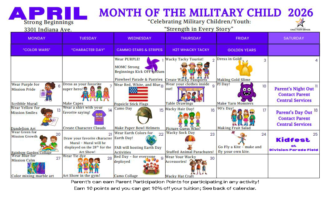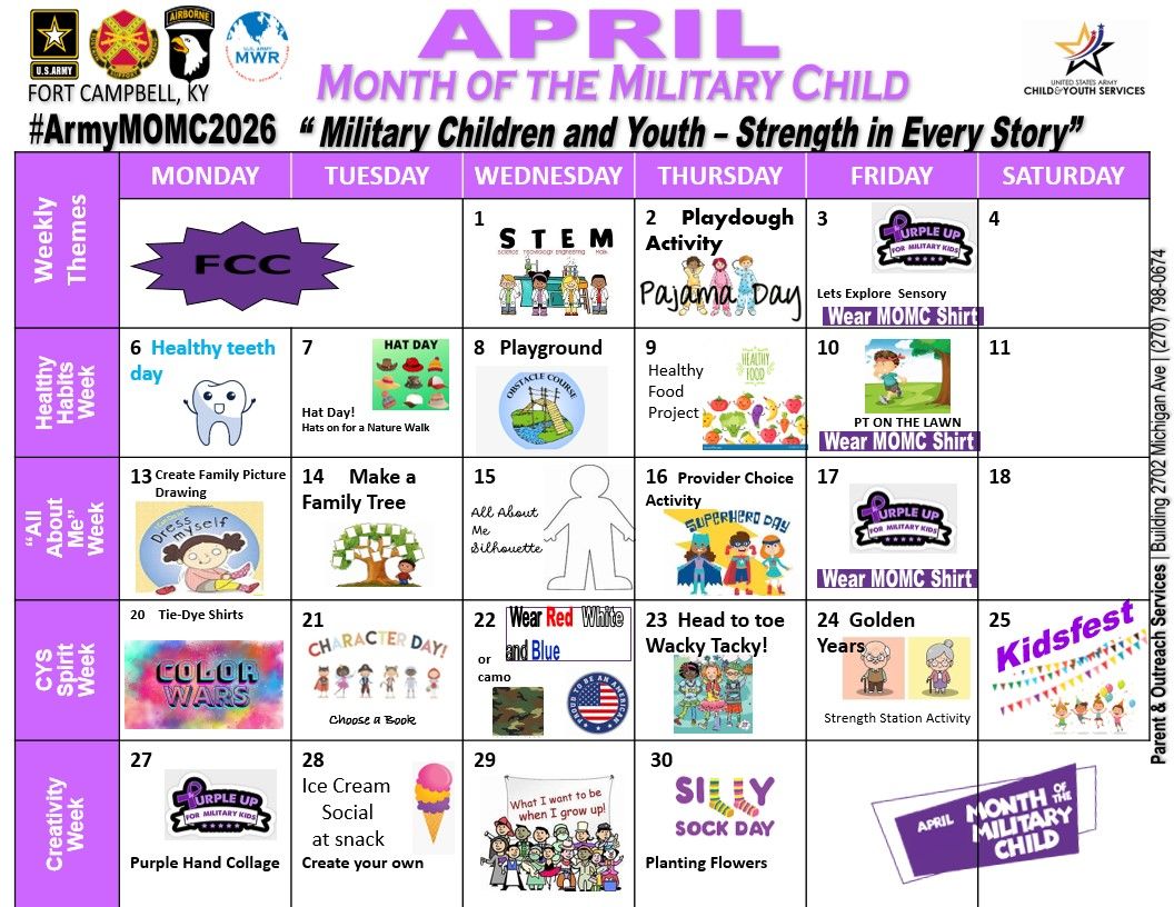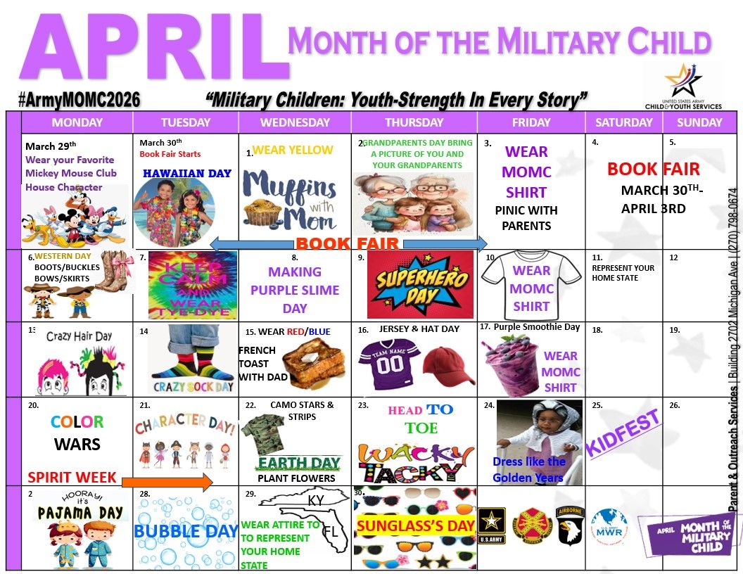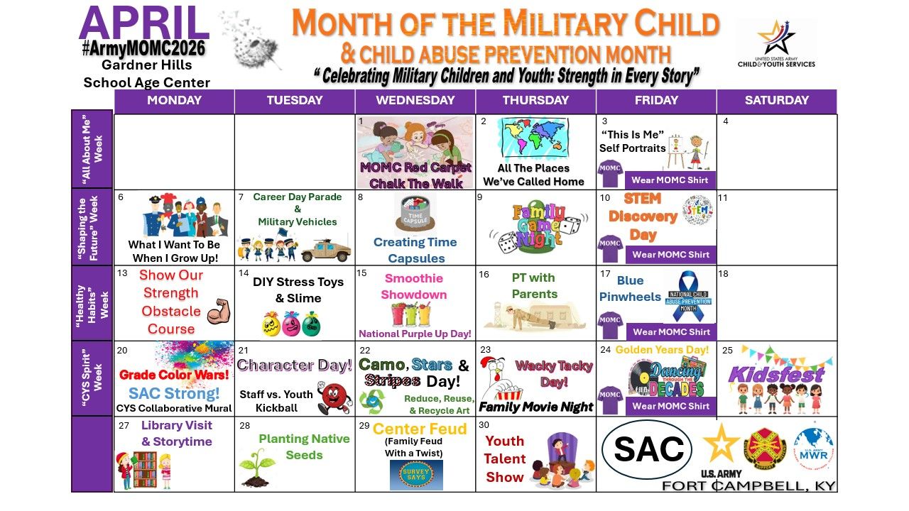 And that's just the beginning! With so many activities and events planned, there's something for everyone to enjoy during the Month of the Military Child. Join us as we celebrate the strength, courage, and resilience of our military kids and their families!