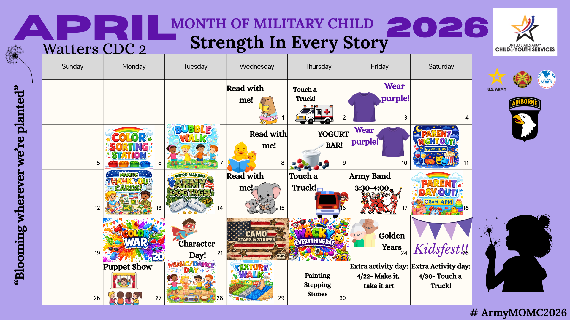 Our Child and Youth Services facilities are hosting a variety of special events and activities to honor military children.