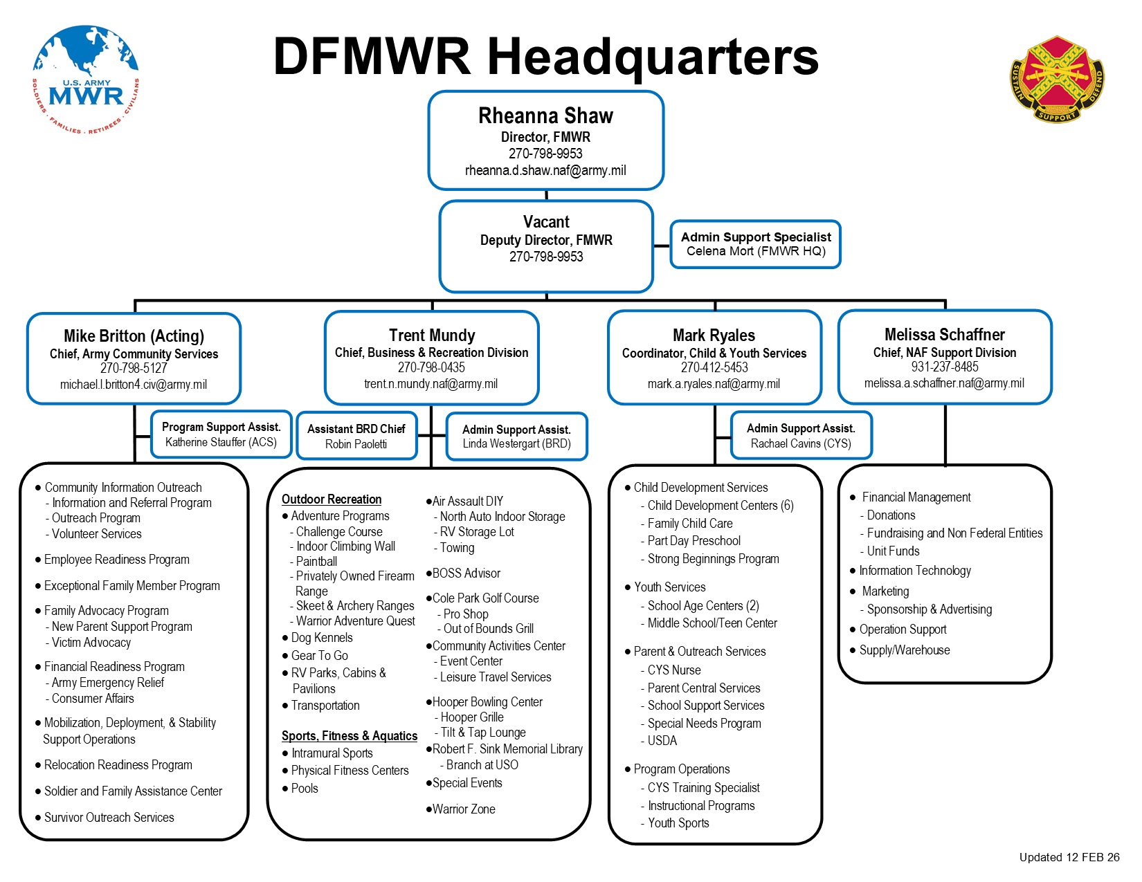 DFMWR Organization Charts